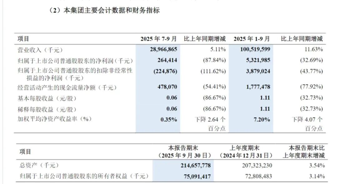 其中,第三季度的业绩尤其刺眼。当季营收289.67亿元,同比增长5.11%;但归母净利润只有2.64亿元,同比下降87.84%;扣非净利润-2.25亿元,同比下降111.62%。