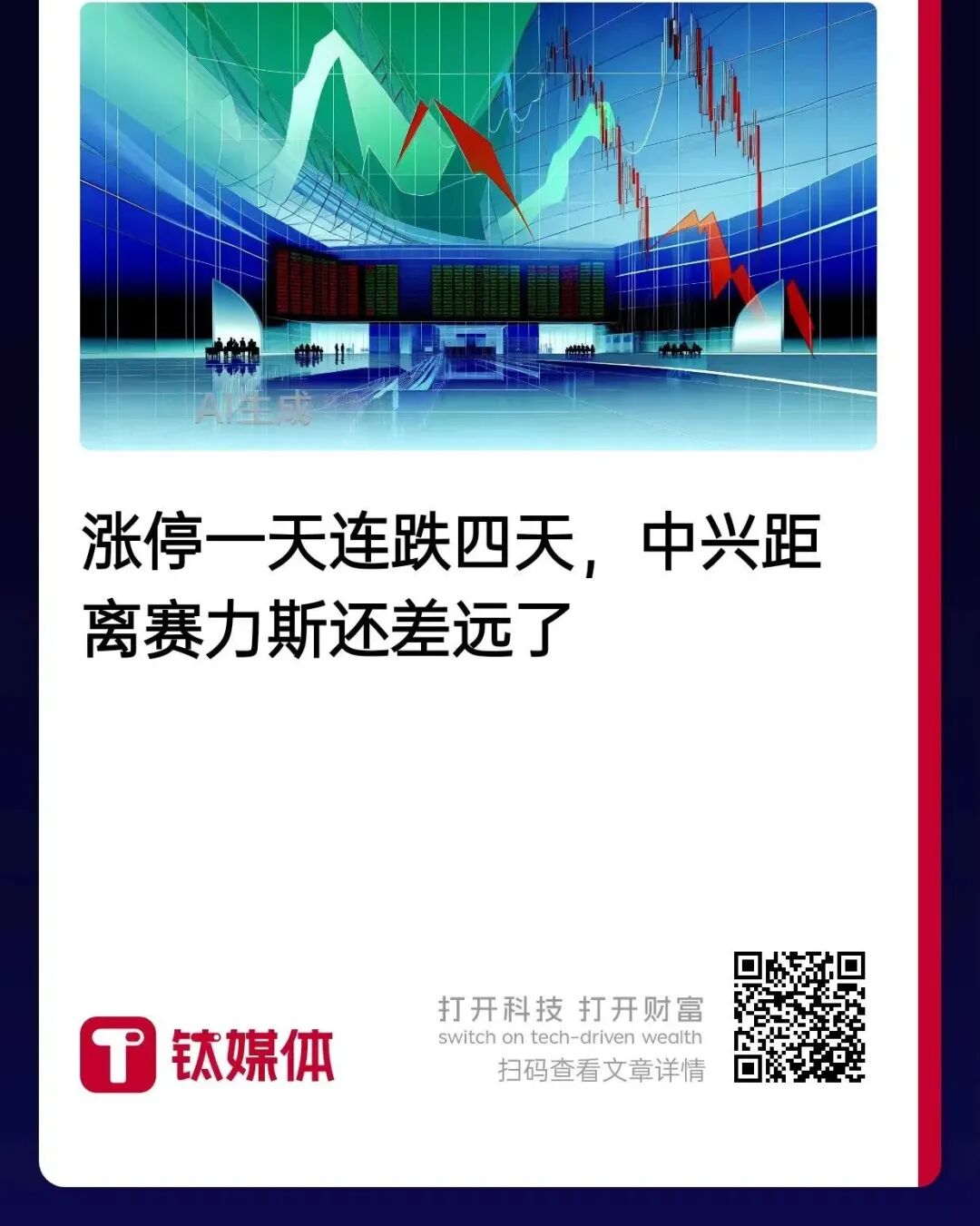 只不过,资本的本性从来只负责起哄。一天涨停过后,中兴马上连跌四天,股价甚至跌回利好公布前。市场用脚投票的意思很直接——这事儿,先别急着神化。