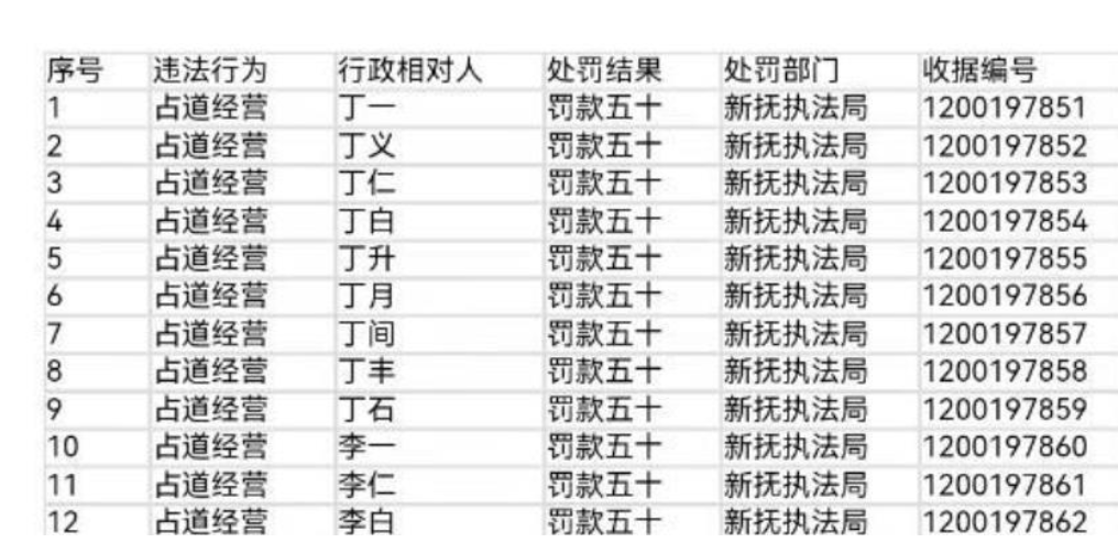 因为五人组的出场率过高,大家的关注点都在他们身上,很多人忽略了,这次假名单风波的起点,其实是“众多明星违规占道经营”,有网友意外发现,一则来自2019年的占道经营处罚名单上,居然出现了大量的艺人名字,如李现、邓伦、金晨、孙俪、胡歌等等。