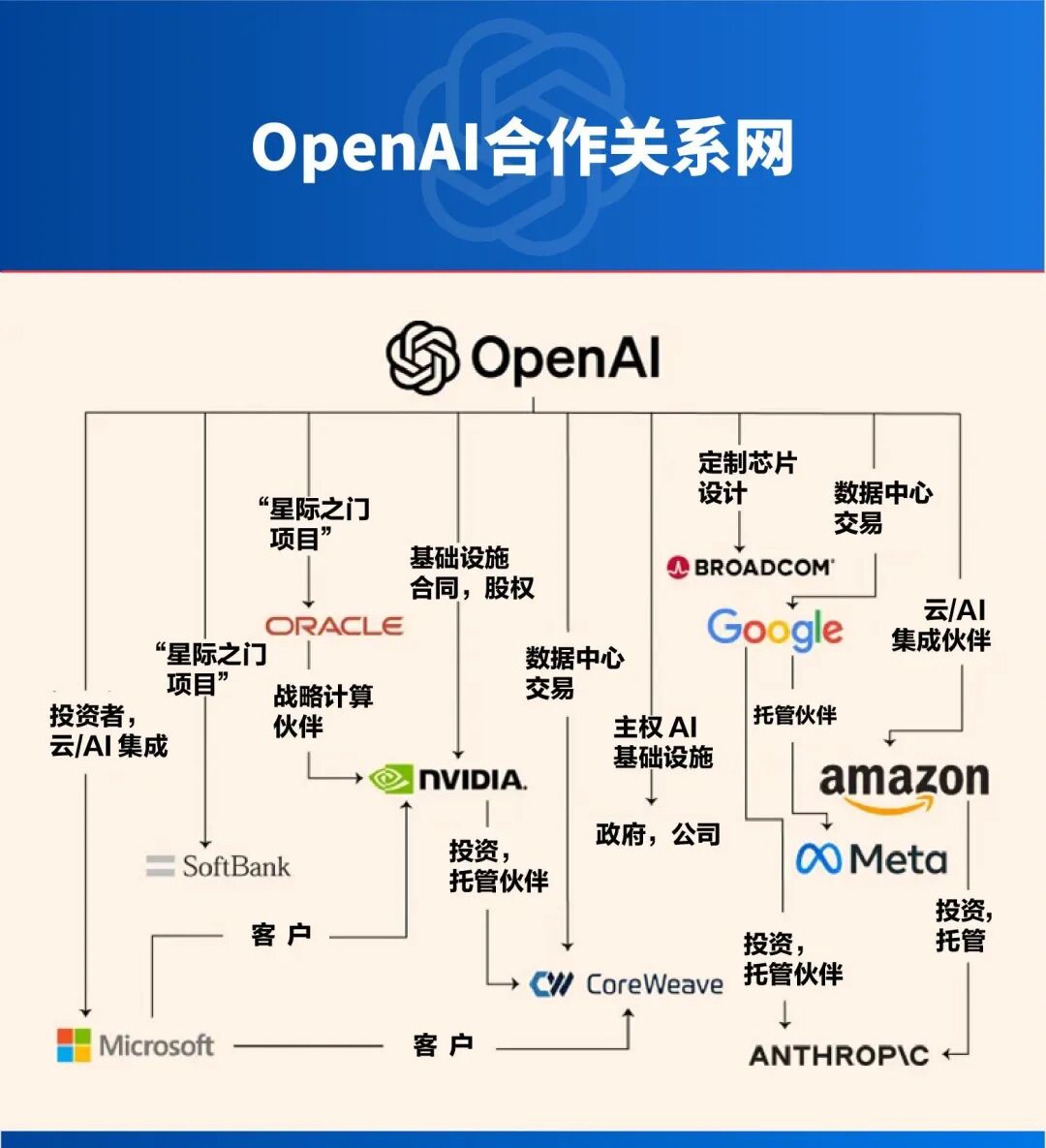 相比之下,英伟达通过销售芯片和战略投资早已锁定收益,而OpenAI则以长期合同换取了算力和资金,二者均处于相对有利的位置。