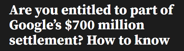 据KTLA 12月10日报道 如果你在2016年8月至2023年9月期间通过Google Play商店进行过购买,且受到这家科技公司涉嫌反竞争行为的影响,你可能很快将获得7亿美元和解金中的部分赔偿。报道截图