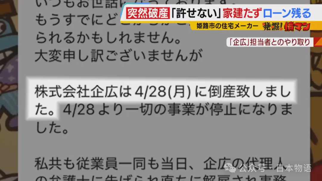 但仅仅一个月后,“企广”的担当人发来了一条消息:“株式会社企广已于4月28日破产。我们深表歉意。”