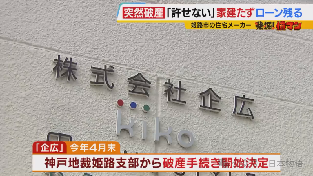 房子没建成,贷款要还到老,似曾相识的一幕在日本也上演了。这不是电影桥段,而是在日本真实发生的事,神户一家名为"企广"的住宅开发商,在兵库县姬路市经营了半个多世纪,今年4月末突然破产。数十个日本买房家庭的梦想随之坍塌,留下的只有数千万日元的贷款,和一地荒草。