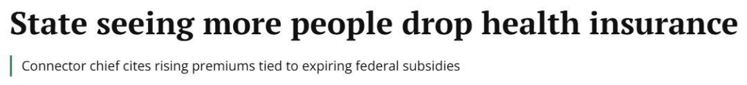 联邦医保补贴即将到期,相关保费预计大幅上涨,在此背景下,麻萨诸塞州近期已有超过1万名居民取消了通过州医保连接平台(Massachusetts Health Connector)购买的医保计划。(图片来源:Recorder标题截图)