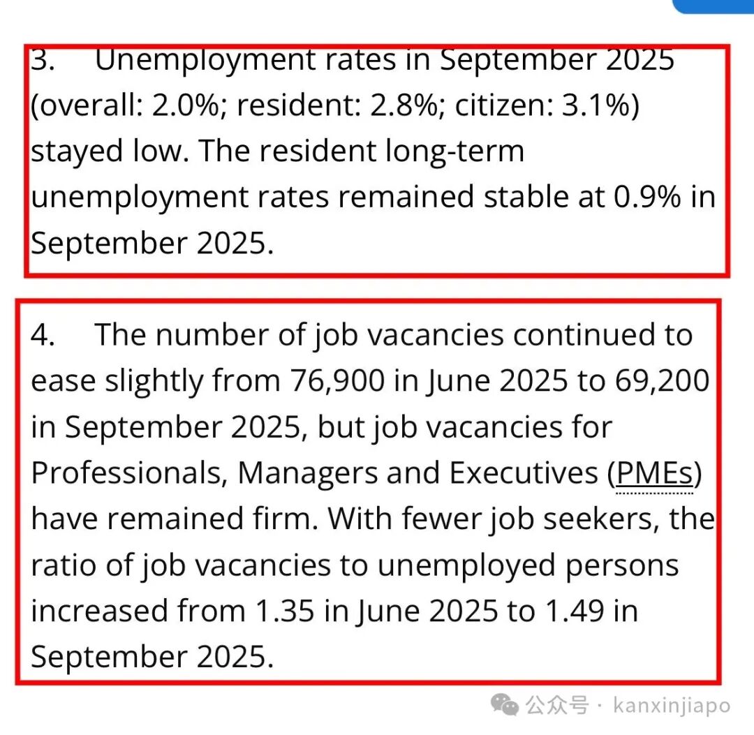 最近,MOM发布的2025年第三季报告显示:新加坡的劳动市场表现继续稳健,就业人数明显增加,而失业率和裁员数都保持在较低水平。对普通上班族和打工人来说,是个好消息。图源: (MOM)
