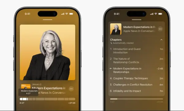 苹果“播客”应用在iOS26.2中新增三项功能:节目章节自动生成、屏幕上显示时间戳链接,以及可以直接在音频播放器和文稿页面查看当前播客提及的其他播客节目。