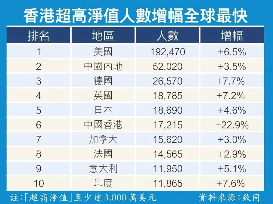 今年上半年,香港新增了3208名资产3000万美元以上超级富豪,增幅高达22.9%。