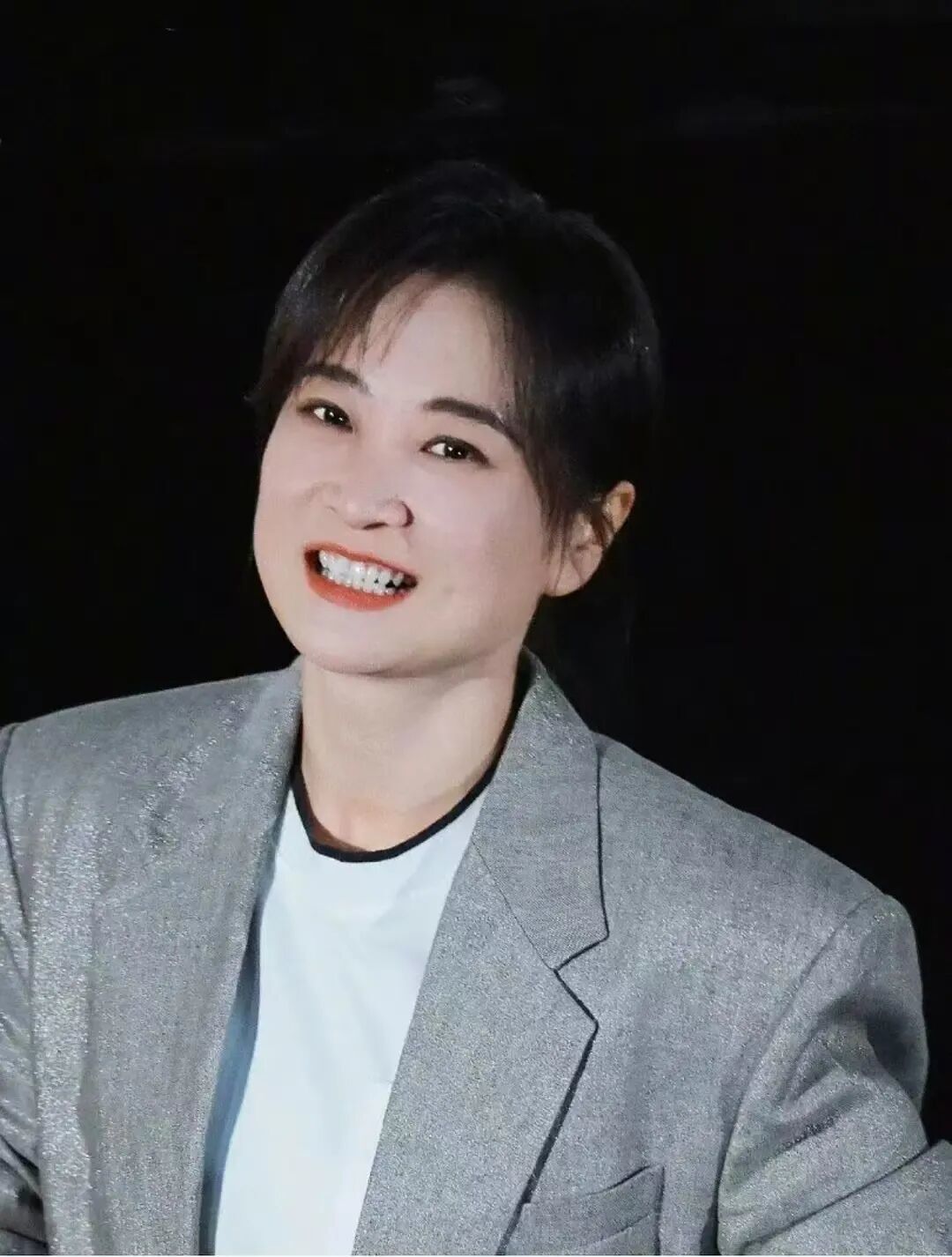 记忆中那张总是漾着亲切笑意的圆润脸庞,如今被清晰瘦削的轮廓所取代。最触动人的是她的眼神——以往那弯随时准备逗乐观众的月牙,现在沉淀了下来,透着一种安静的、不容轻易打扰的坚定。