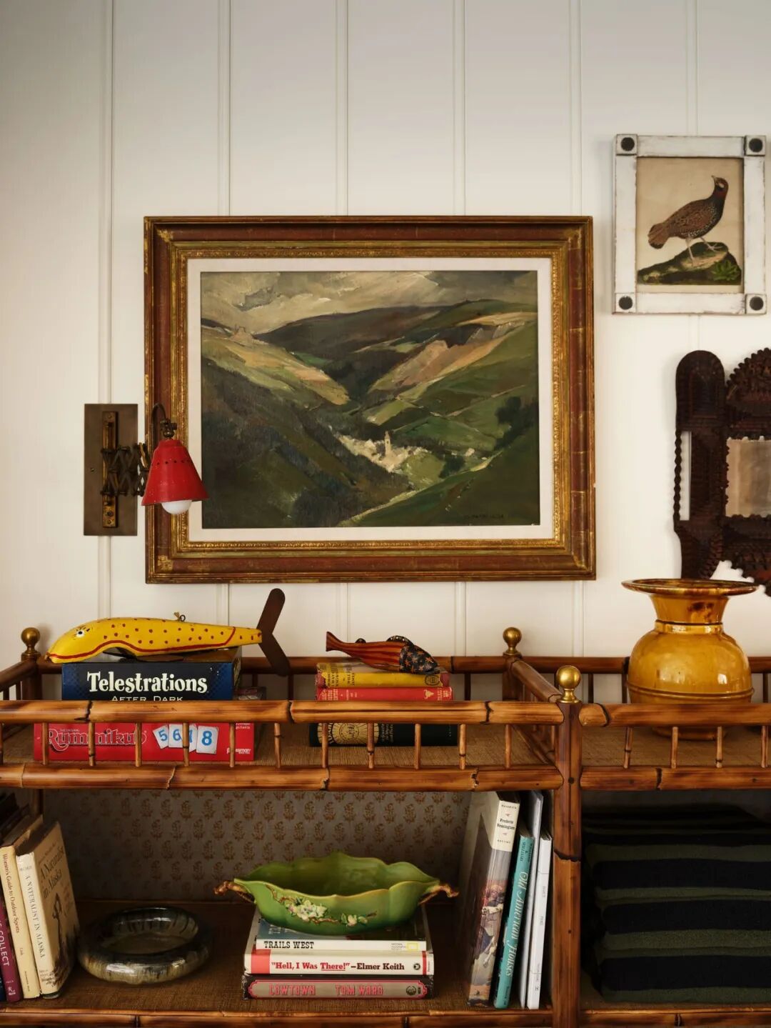 大厅中央的茶几则摆满了肯豆从小镇古董店淘回来的书。不少网友笑称:欧美明星都很爱用书籍做装饰品,明明都不看。
