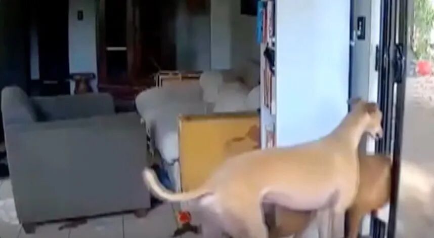 之后,这4只动物就开启了在客厅的狂欢派对,两只高大的有蹄类动物把架子上的东西全扒拉掉,又去沙发上试了试脚感。