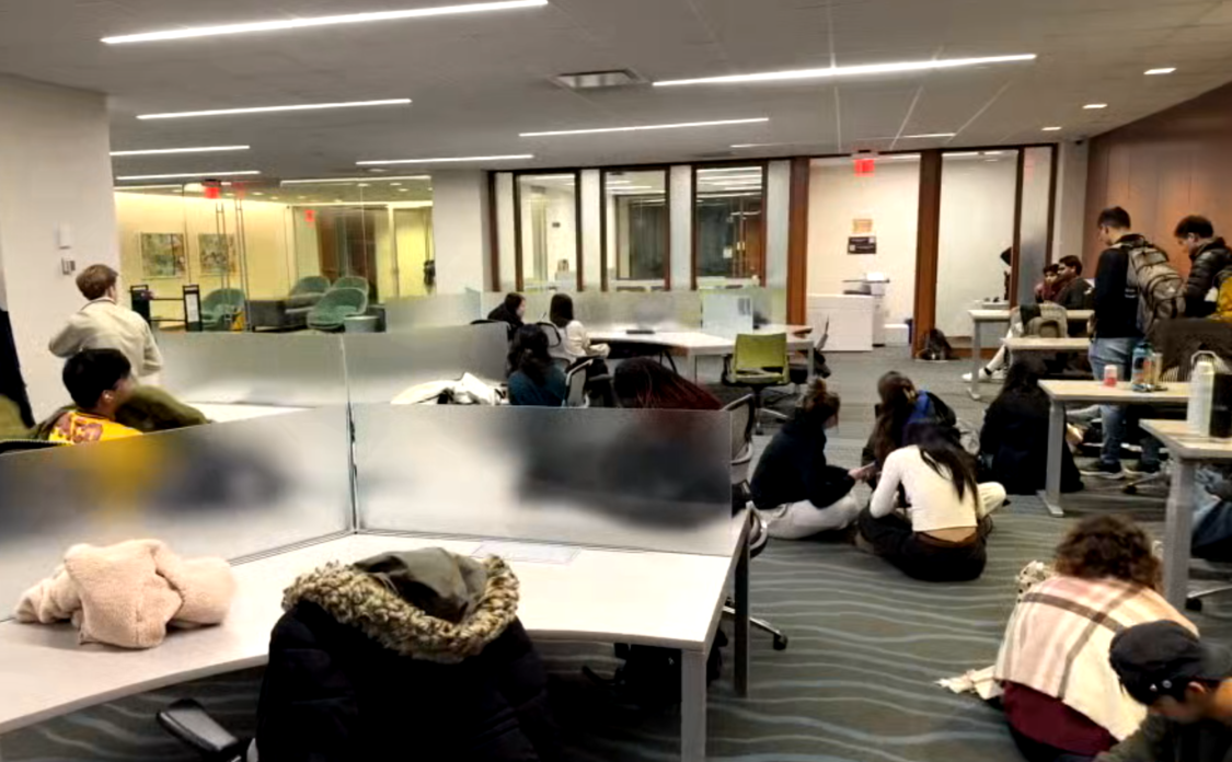 正在布朗大学访问的中国留学生梁同学告诉红星新闻记者,他和其他同学在经过漫长等待后终于被放出图书馆。他们深夜坐上校车,被警车护送着转移到学校体育馆。梁同学表示,体育馆内有水和食物,感觉很安全。体育馆外不仅有“超多警车”进行警戒,天上也有直升机在盘旋。他和同学们进入体育馆之前,还被警察进行了严格的搜身。