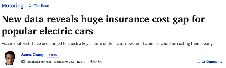 相同的电动车,保费差价可能高达3000澳元。