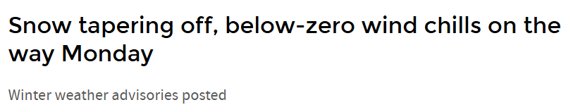 周一全天阵风持续且严寒依旧,最高气温仅二十几华氏度,风寒指数维持在十几华氏度。周二预计同样寒冷(最高气温三十华氏度上下),但风力将明显减弱。