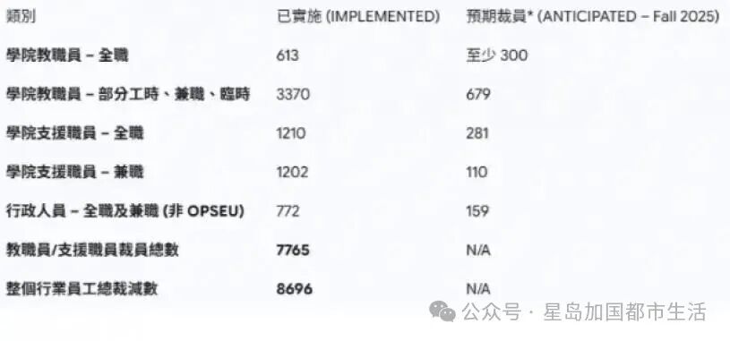 OPSEU工会于2025年7月的通讯中指出,统计19所院校裁员人数逾八千人。