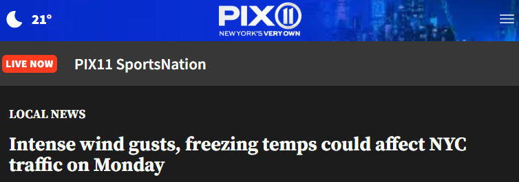 美国国家气象局向纽约州南部和新泽西州北部多个县发布了特殊天气通报,提醒夜间阵风和冰冻低温可能会导致路面出现危险状况。