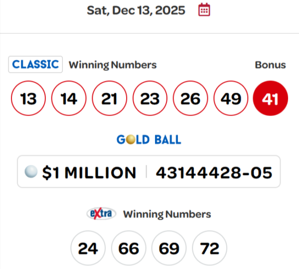 周末的Lotto Max和Lotto 6/49开奖后,尽管没有人获得巨额头奖,但仍诞生了一批百万富翁。Lotto Max开奖于12月12日星期五举行,中奖号码为04、16、25、28、36、38和41,bonus号码为09。