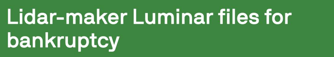 激光雷达企业Luminar Technologies周一股价暴跌58%,此前该公司已申请破产法第11章保护并宣布资产出售计划。