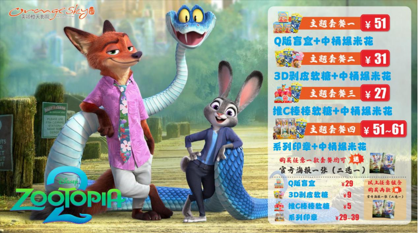 湖州城东美颂橙天影院推出的“疯狂动物城”主题套餐;受访者供图