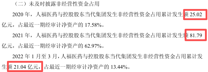 其一,2020-2022这三年,人福医药与当代集团发生非经营性资金占用,加起来多达127.85亿。