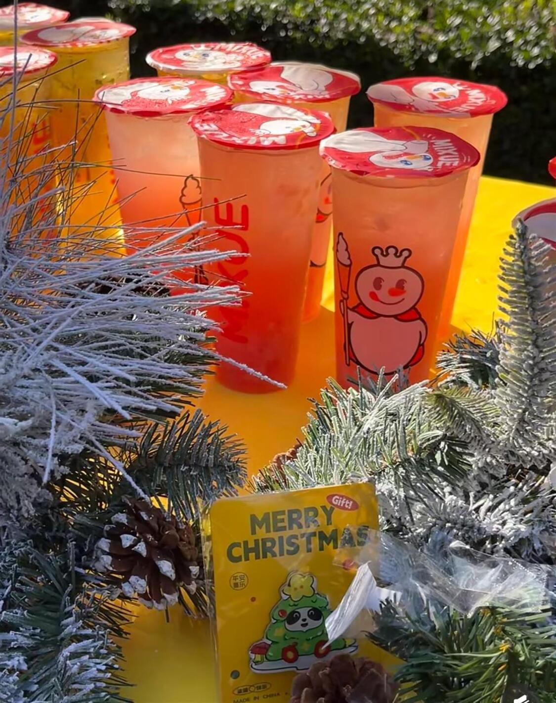 留学生赵迪(化名)表示,新门店位于星光大道中国剧院对面,属于非常繁华的地段。15日中午,雪王人偶还专程带了几百杯饮料来到南加利福尼亚大学门口免费发放,美国版蜜雪冰城味道和国内的差不多,听工作人员说,明天中午还会继续发。