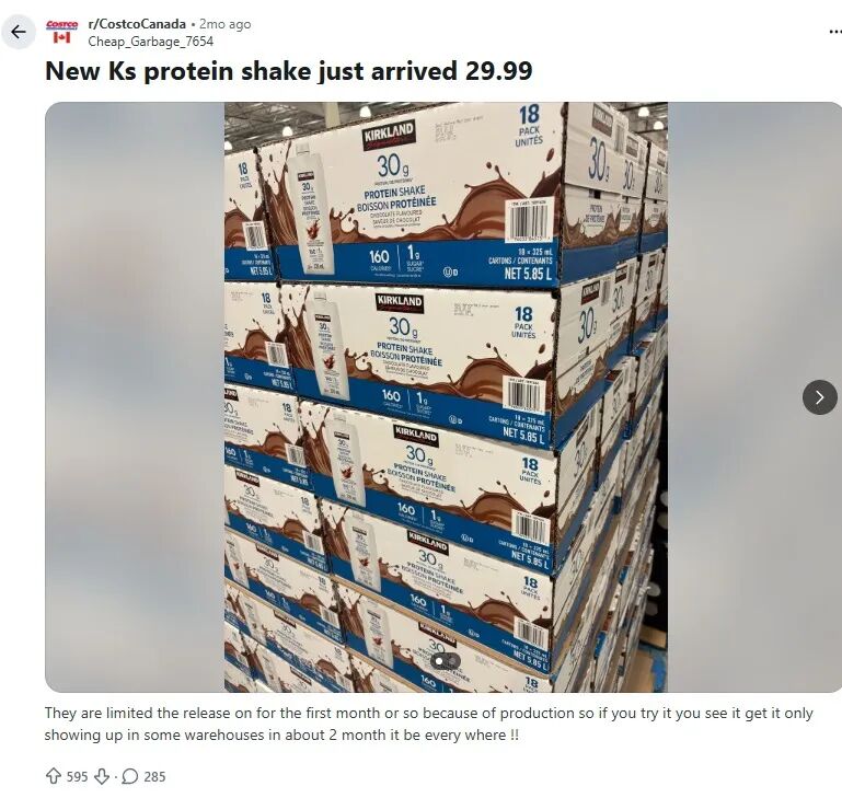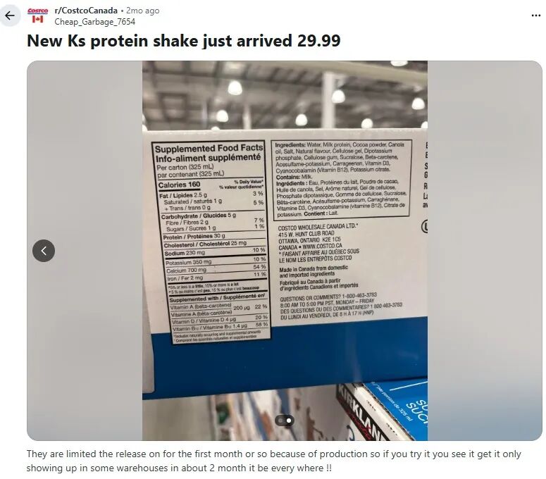 目前,这款Kirkland蛋白奶昔尚未在Costco加拿大官网上架,但已有多名消费者在社交媒体上晒出购买经历。