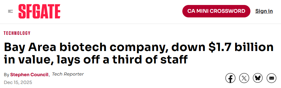 这家位于福斯特城(Foster City)的制药商在一份新闻稿中披露了裁员计划,称公司目前员工总数约为260人,因此约有85人将受到影响。此次裁员发生在新任CEO Harout Semerjian上任几个月后。他在声明中表示,此举是“本着审慎的财政管理精神”作出的决定。