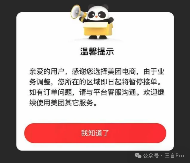 据了解,今年6月美团优选已收缩19个省份(如北京、四川),此次彻底关停仅剩区域。