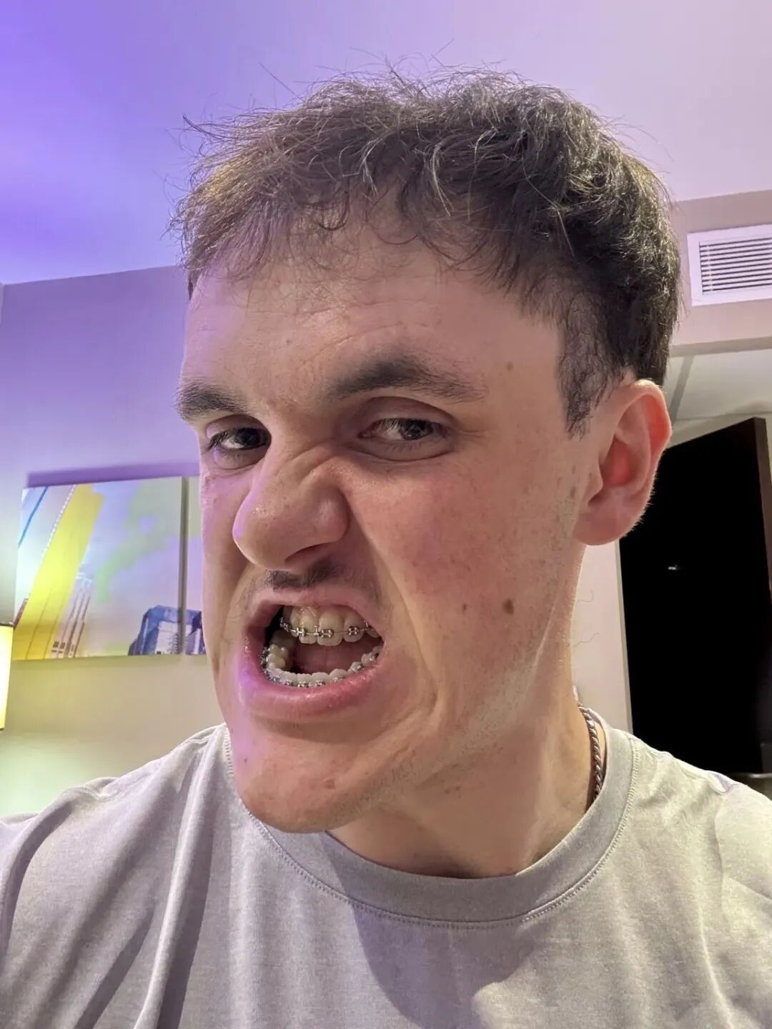 “正脸一般,但侧脸绝了。”这句话放在年轻小伙Luke McLuckie头上,极具讽刺意味。理由看他的侧脸就知道,他有严重的反颌问题,下巴过度前伸,也就是俗称的“地包天”。Luke现居英国大曼彻斯特,今年24岁,早在13岁那年他就表现出反颌迹象,发展到最后,下颌比上颌前突了大概1.5厘米,他自己试过,间隙足以塞下一颗弹珠。