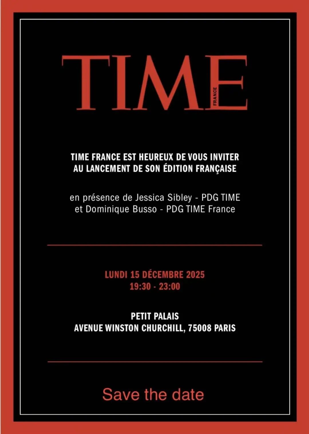 这两天在巴黎,小皇宫(Petit Palais)悄悄发生了一件“不寻常”的事。美国《时代周刊》(TIME)为它的法文版——TIME France,郑重举办了一场首发式。黑红配色的邀请函、TIME总部高管与法国团队共同出席——一切都在强调:这不是一次试水,而是一枚落子。