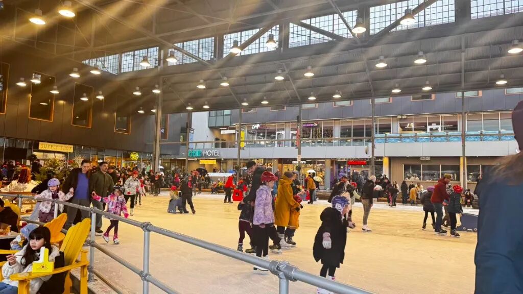 吃饱喝足,再去溜冰场上尽情滑一圈,欣赏城市圣诞树;观看精彩的社区表演