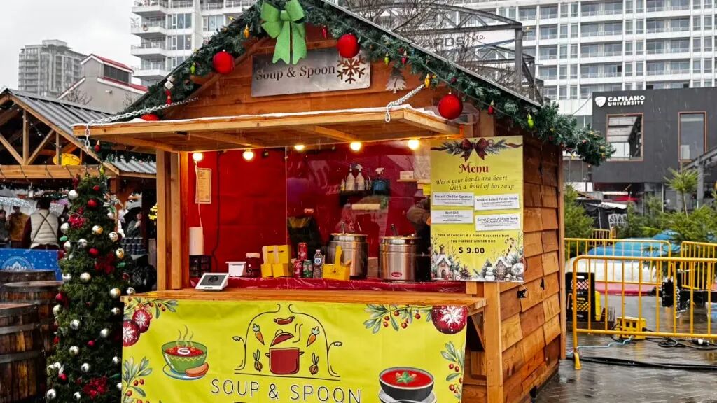 温哥华雨天,最好的去处就是逛逛热闹的圣诞集市。交通方便、不需要门票的北温造船厂圣诞集市(Shipyards Christmas Market)就是一个好去处,