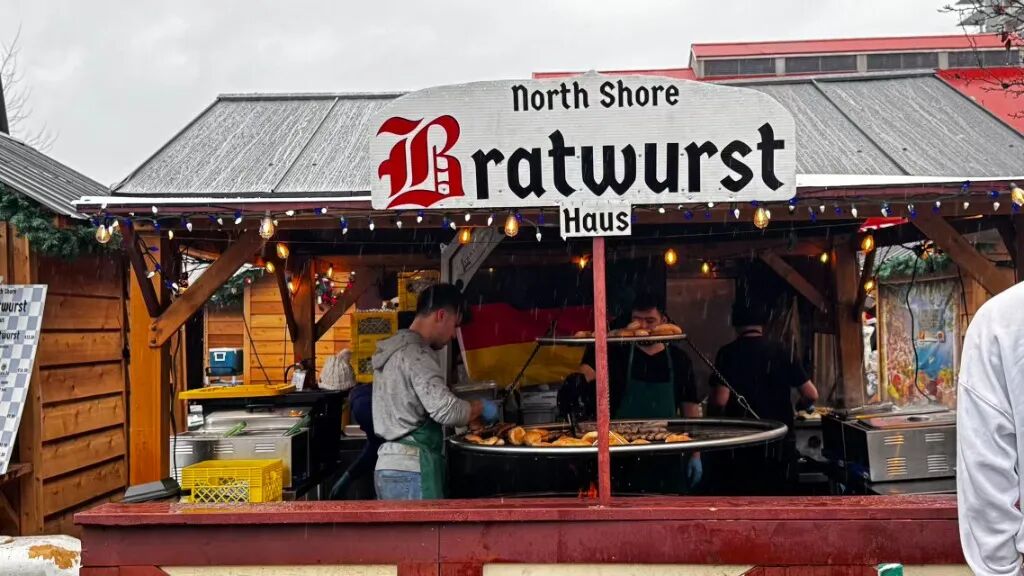 德国传统美食和圣诞集市上的常见小吃德国香肠Bratwurst 也大受欢迎。