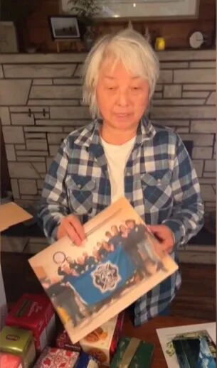 “今年,令人惊喜的是,我收到了消防队寄来的照片”。Keiko 微笑着举起照片,照片中消防队员们站在消防车前,手里拿着她寄的礼物。