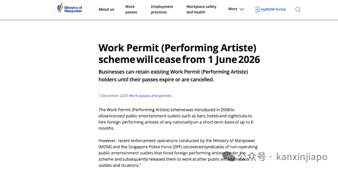新加坡人力部(MOM)宣布了一项对夜店、酒吧影响巨大的决定:从2026 年6月1日起,“表演艺人工作准证(Performing Artiste Work Permit)”将正式取消,不再接受新申请。
