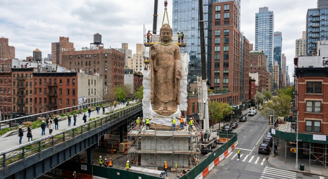 据了解,这座佛像雕塑将取代高线公园当前展出的艺术装置——一件名为《恐龙》(Dinosaur)的21英尺高鸽子造型作品。至于《恐龙》未来的安置地点,目前尚未公布。