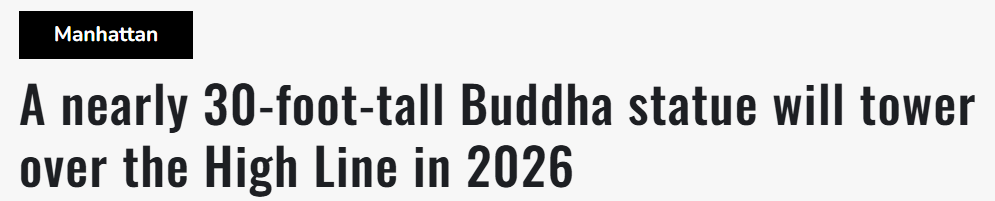 一座高达27英尺(约8.2米)的巨型佛像雕塑将于明年亮相纽约曼哈顿高线公园(The High Line)。来源:Amny报道截图