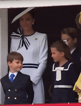 这也让不少网友想起去年皇家阅兵现场,夏洛特“血脉压制”的经典一幕:在路易各种小动作嘚瑟时,夏洛特很高冷又很有女王范儿地斥责他——“快停下吧,好好看阅兵。”