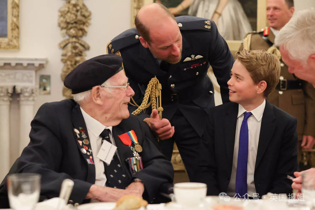 下午茶时间,威廉引导乔治和二战老兵们交谈。媒体分析,乔治出席茶会体现了威廉和凯特正在逐步引导他,去面临将来可能要继承的王室职责: