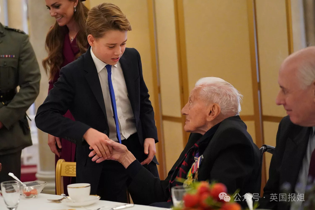 之后,乔治单独跟爸妈出席了二战老兵下午茶活动。这是他第一次深入参加皇室活动,而不是像之前那样,只露面当个观众。