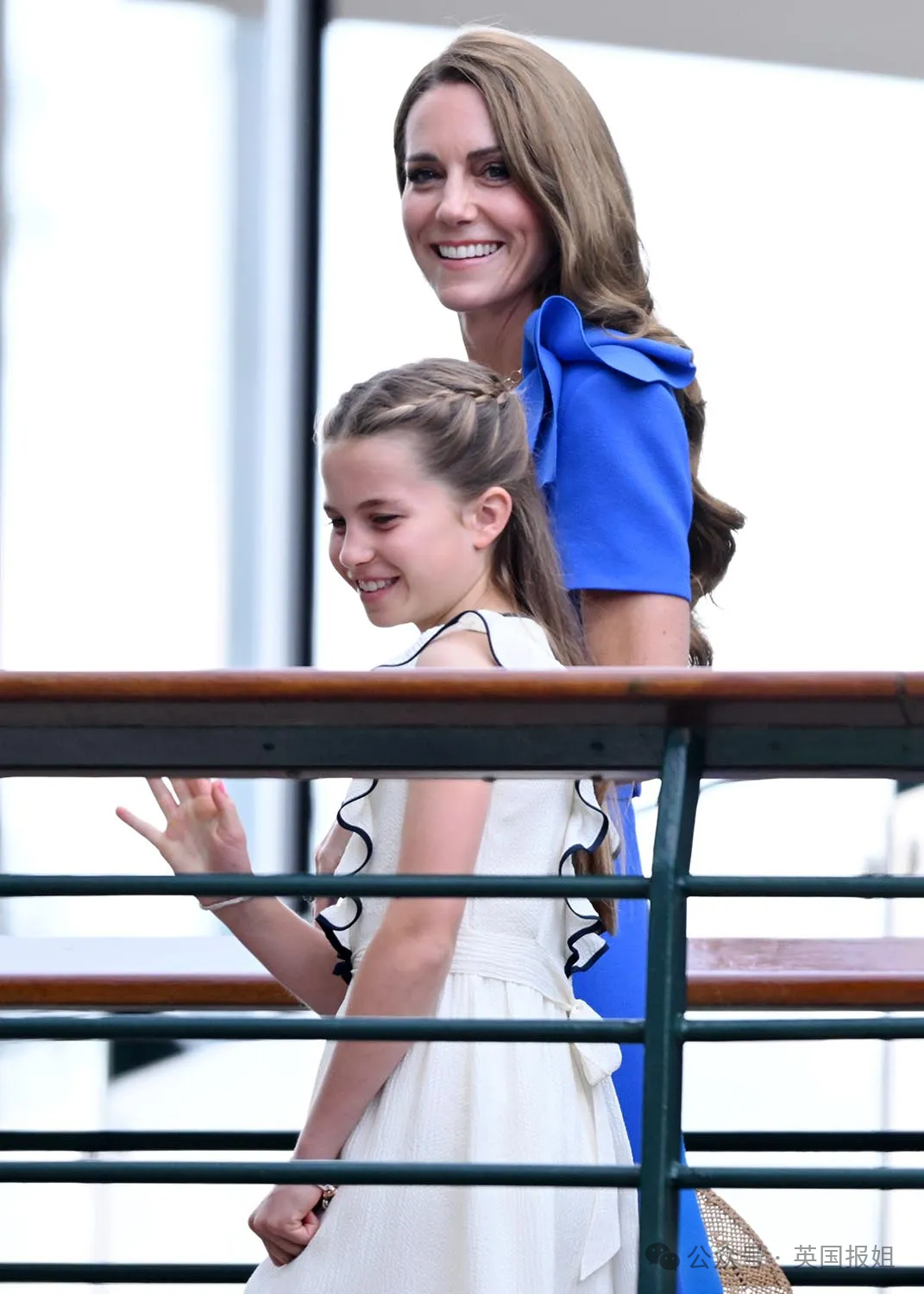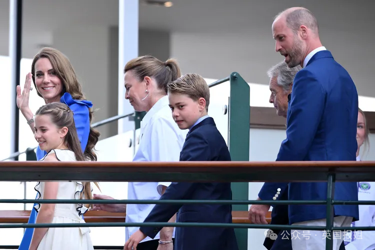 7月,乔治、夏洛特跟着爸妈出席温网公开赛。不久前凯特刚刚观看了女子单打决赛,这次全家一起出动(路易:我呢?),在现场相当受欢迎。