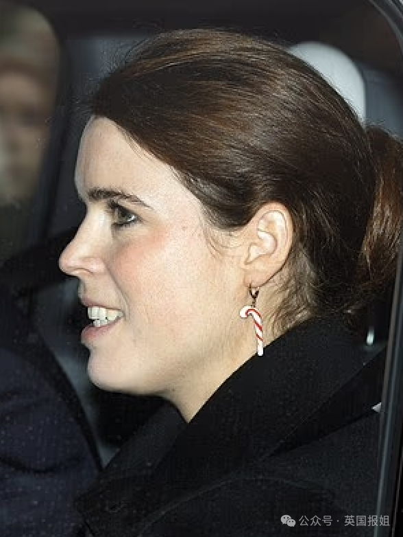 两人有说有笑的显然很有兴致。尤金妮公主为了迎接节日到来,还特意戴着上拐杖糖耳环。