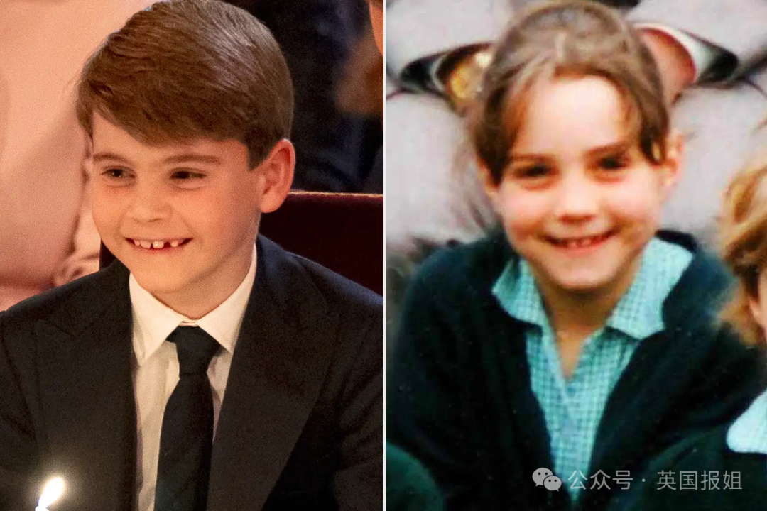 有人翻出凯特小时候的照片,正面角度和路易真的超像,眉眼和微笑的风格都惊人一致。
