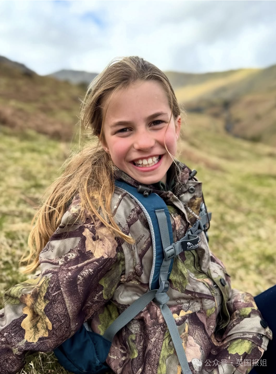 接着是5月。夏洛特今年的生日照是年初访问英格兰时,凯特用手机拍下的。照片中她身穿迷彩外套,背着蓝色背包,正在享受户外郊游的乐趣。