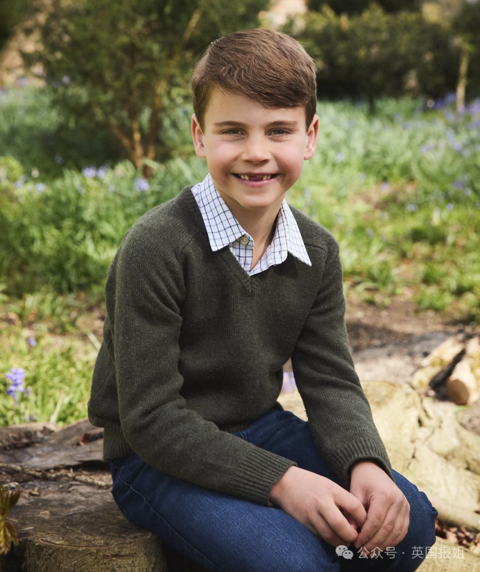 最小的路易生日在4月。今年的生日照里他没了门牙,但看起来还是挺稳重。