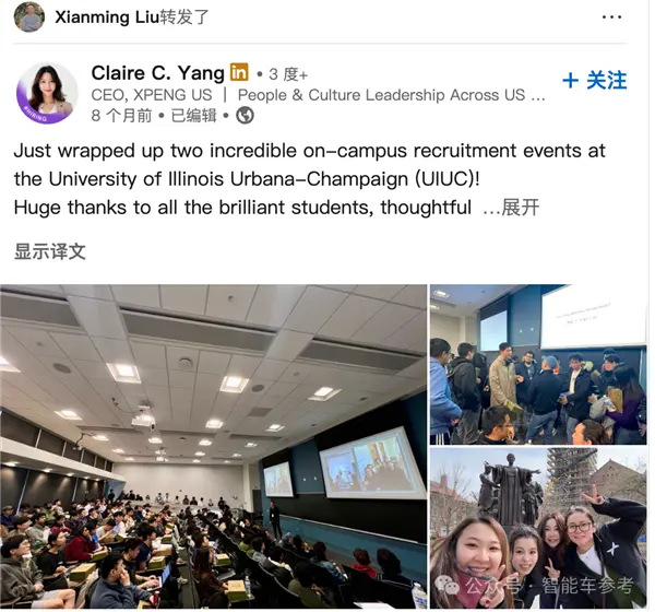 小鹏北美CEO现在正在做的,就是密切配合刘先明团队在北美顶尖高校招人: