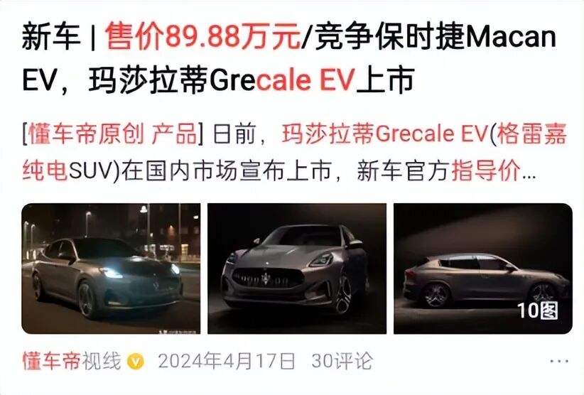 在2024年这款纯电玛莎拉蒂进入国内市场的时候,即使当时国内电车市场上,纯电豪车已经是呈现了百花齐放之势。