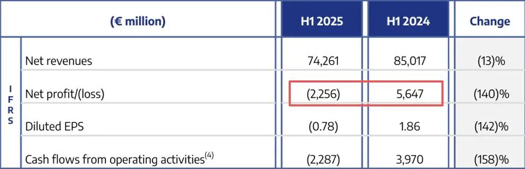 而如今的玛莎拉蒂母公司Stellantis今年上半年的归母净利润,已从去年同期的盈利56.47亿欧元,变成亏损22.56亿欧元。