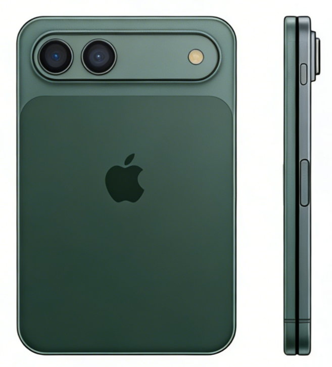 iPhone Fold的摄像头,沿用了类似iPhone Air的「防爆盾」,同时还保留了iPhone 17系列的拼接背面。