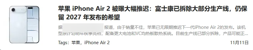 AI大模型的姗姗来迟、iPhone Air的出师不利、Apple Vision Pro的惨淡销量。