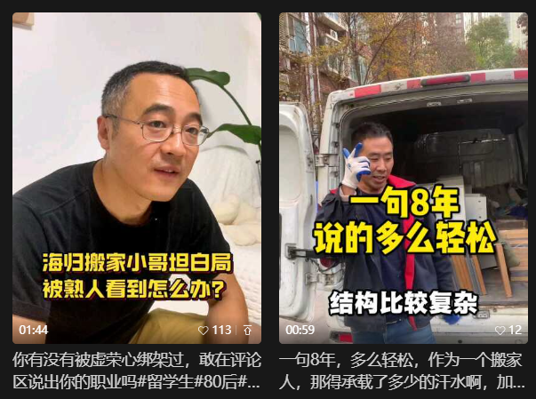 02“一开始最怕遇到熟人”贾玉慧承认,自己也曾经被虚荣心绑架过。“以前穿的都是名牌,一套上万,现在的衣服都是一百多两件那种。“刚开始穿上搬家的工服,我连小区门都不敢进。怕遇见熟人,怕碰到邻居,怕他们问我,‘你不是留学生吗,怎么干货拉拉了?’”